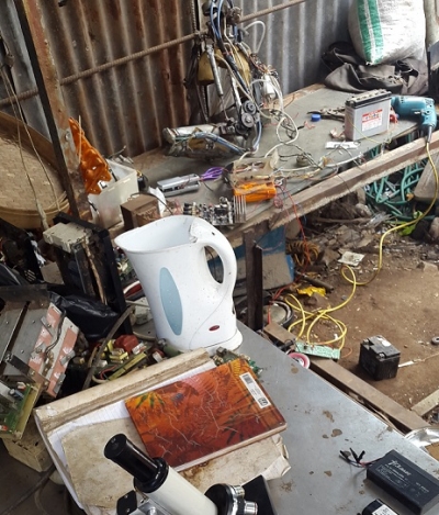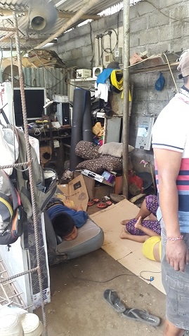 Saat tiba di sana, saya melihat sebuah rumah bertembok papan seng dan beralaskan tanah. Tempat tinggal itu sama sekali tidak mampu menghalau terik matahari atau pun menahan guyuran air hujan. Di sana-sini tergeletak banyak barang rongsokan dan timbunan botol plastik bekas. Persis seperti lapak-lapak pemulung sampah pada umumnya.